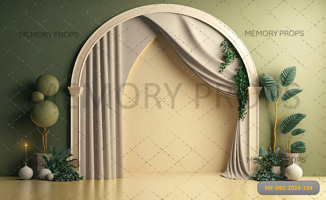 Elegant and earthy, this backdrop features soft green tones with striking natural silhouettes—perfect for adding...