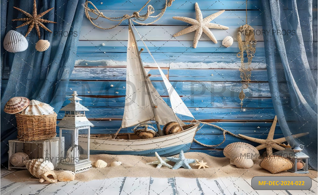 Dive into a serene sea escape with Ocean Whispers, a calming printed backdrop featuring gentle...