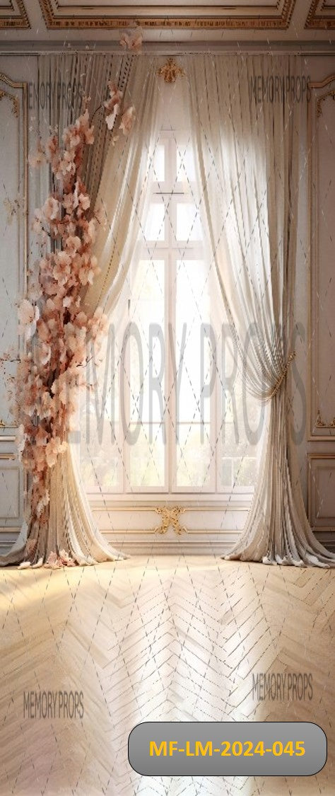 PEACH CURTAIN WITH FLOWERS - PRINTED BACKDROPS