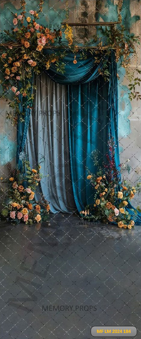 BLUE AND TEAL CURTAIN FLOWERS - PRINTED BACKDROP