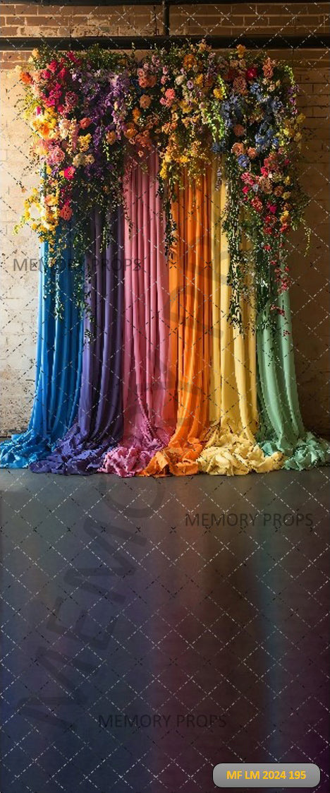 COLOURFUL RAINBOW CURTAIN AND FLORAL - PRINTED BACKDROP