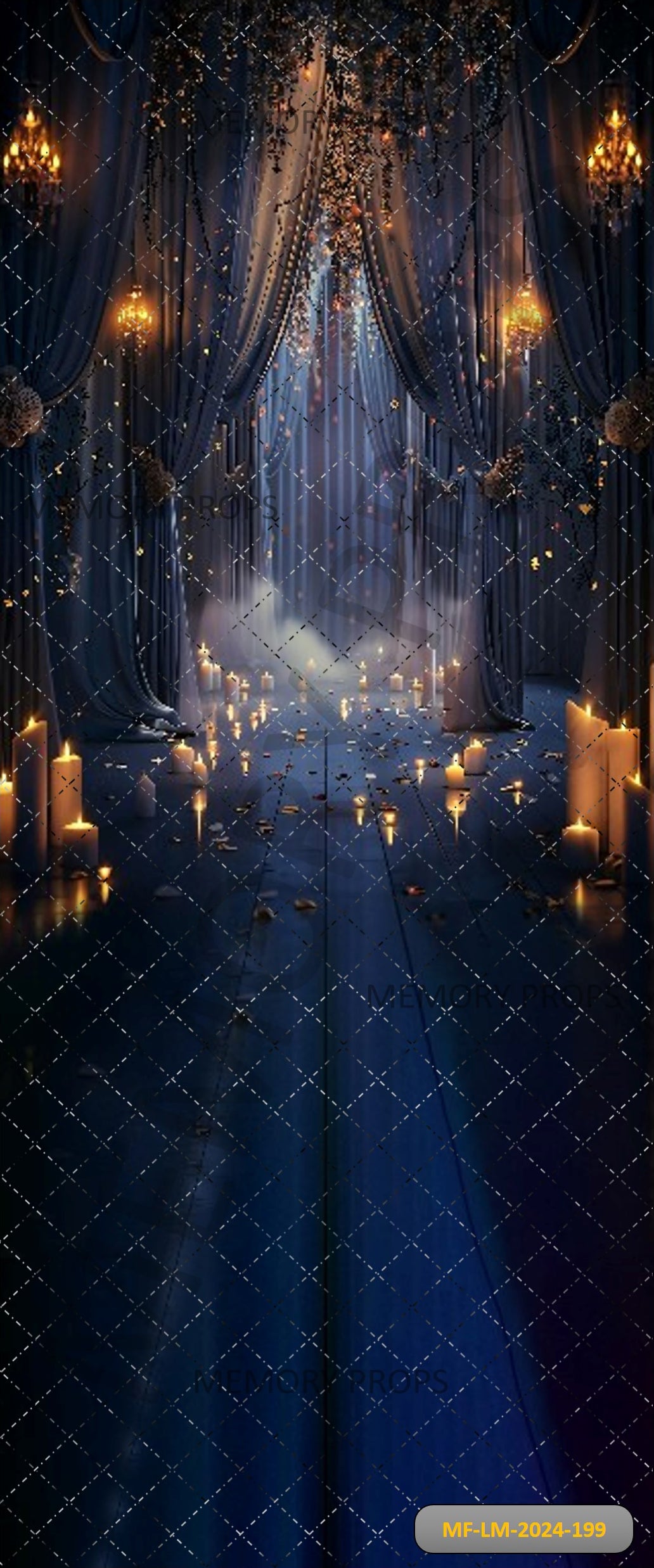 DARK BLUE CURTAIN WITH GOLDEN HANGING LIGHTS - PRINTED BACKDROP