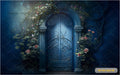 arched door backdrop with blue flooring creates a sophisticated and elegant atmosphere. The printed backdrop enhances the scene with architectural charm and cool-toned aesthetics, perfect for themed photography, events, and stylish decor.