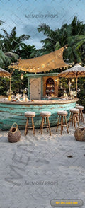 Transform any space into a tropical getaway with our Beach Bar and Lounge Printed Backdrop. Designed to recreate the relaxed charm of a seaside hangout, this backdrop features a cozy wooden beach bar, soft sandy textures, palm leaves, and a serene ocean horizon in the background.