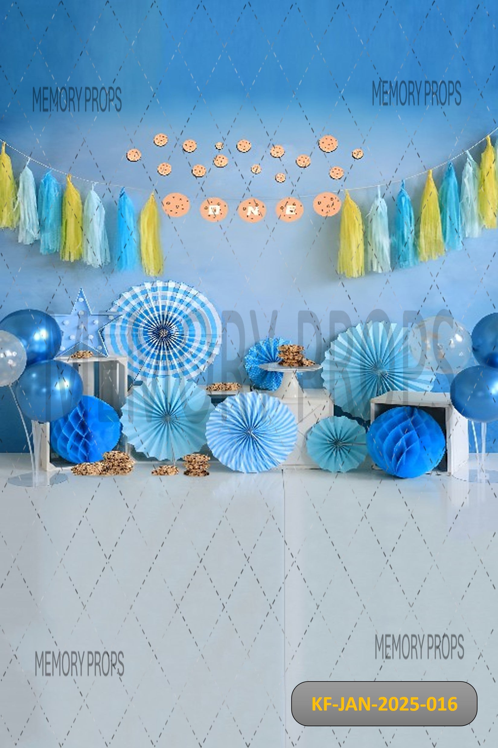 Celebrate messy fun in style with a blue-themed cake smash setup — featuring playful props, a coordinating floor, and a backdrop perfect for capturing those sweet, silly moments of your little one’s big day.