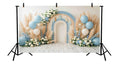 Create a calm, trendy celebration setting with the Boho Blue and Cream Macramé Rainbow with Pampas Grass and Balloons Printed Backdrop. Featuring a soft macramé-style rainbow in blue and cream tones, accented with natural pampas grass and delicate balloon clusters, this backdrop brings relaxed boho charm to any event. Perfect for baby showers, birthdays, christenings, neutral boho parties, and lifestyle photo shoots, it’s printed in high resolution with earthy textures and soothing colours for beautifully styled, modern photos.