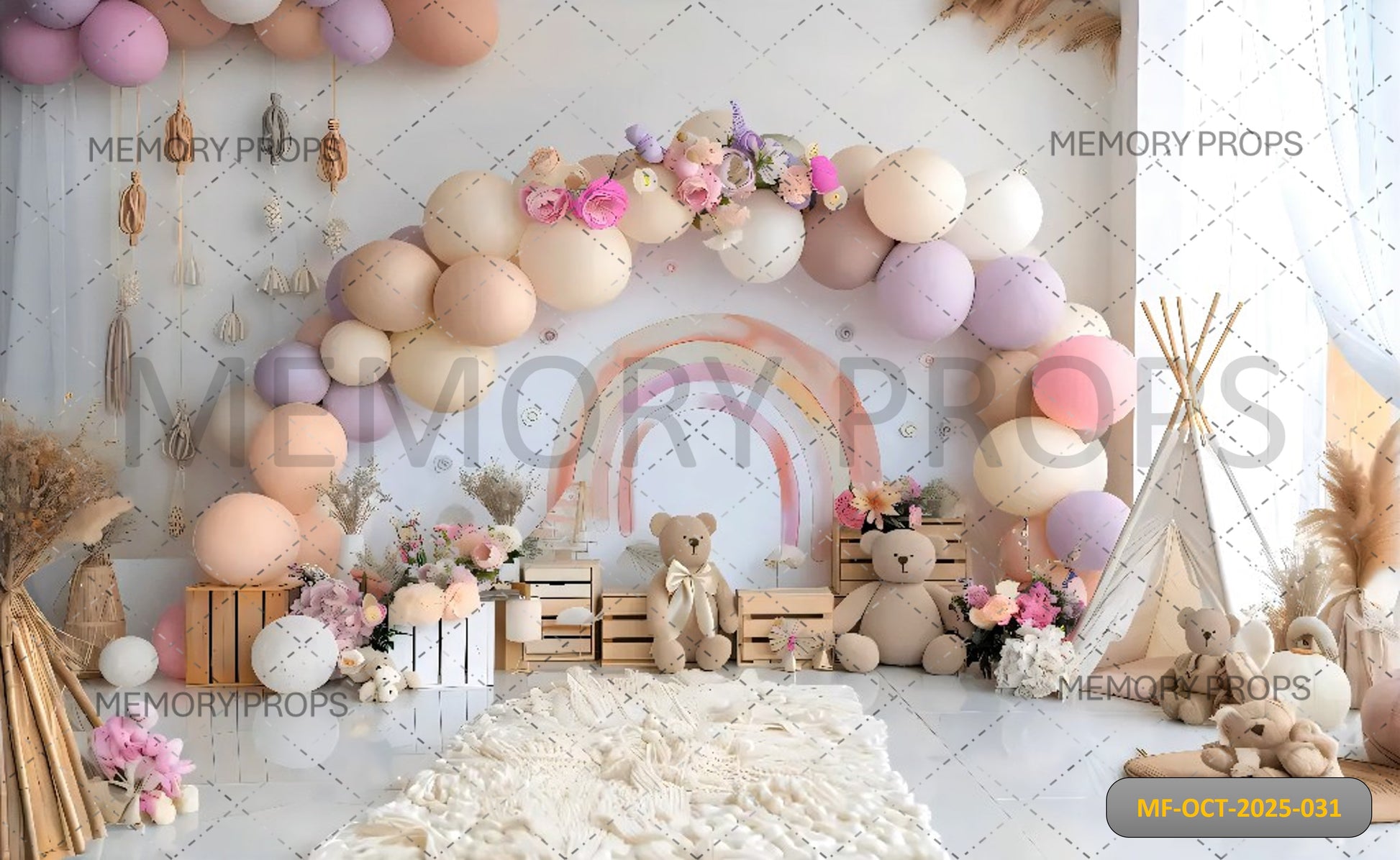 Step into a world of dreamy celebration with the Boho Rainbow Balloon Arch Printed Backdrop — a perfect blend of whimsical charm and modern bohemian elegance. This stunning design features a soft, neutral-toned rainbow balloon arch accented with muted pastels, pampas grass, and dried floral textures, creating a serene yet festive atmosphere.
