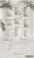 Bring soft elegance and modern bohemian charm to your studio with our Boho White Niches Wall Printed Backdrop. Designed with a minimalist aesthetic, this backdrop features a textured white plaster wall adorned with beautifully arranged arched niches. Each niche is styled with natural décor elements—pampas grass, pottery, woven baskets, and subtle wooden accents—creating a warm, organic atmosphere.