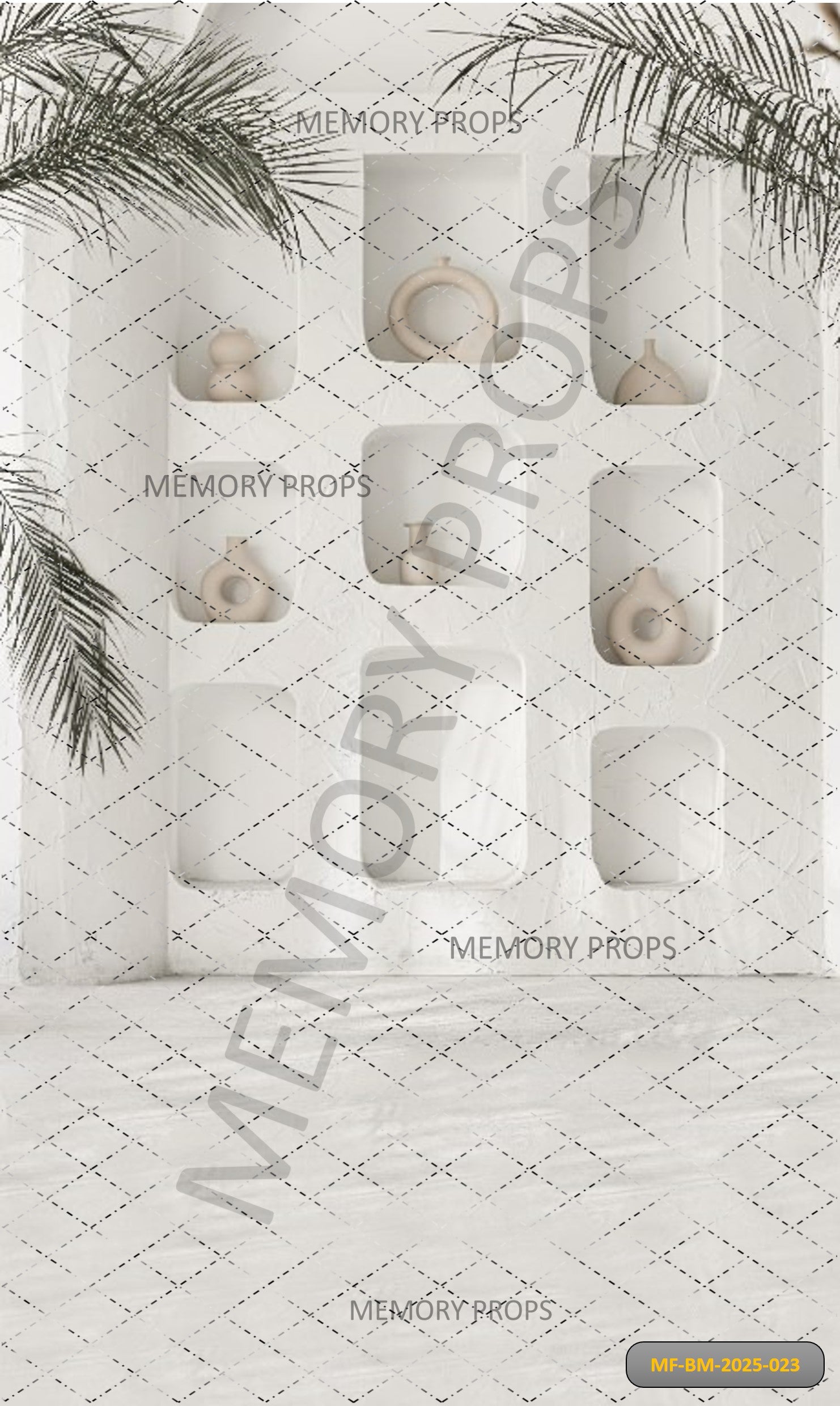 BOHO WHITE NICHES WALL - PRINTED BACKDROP