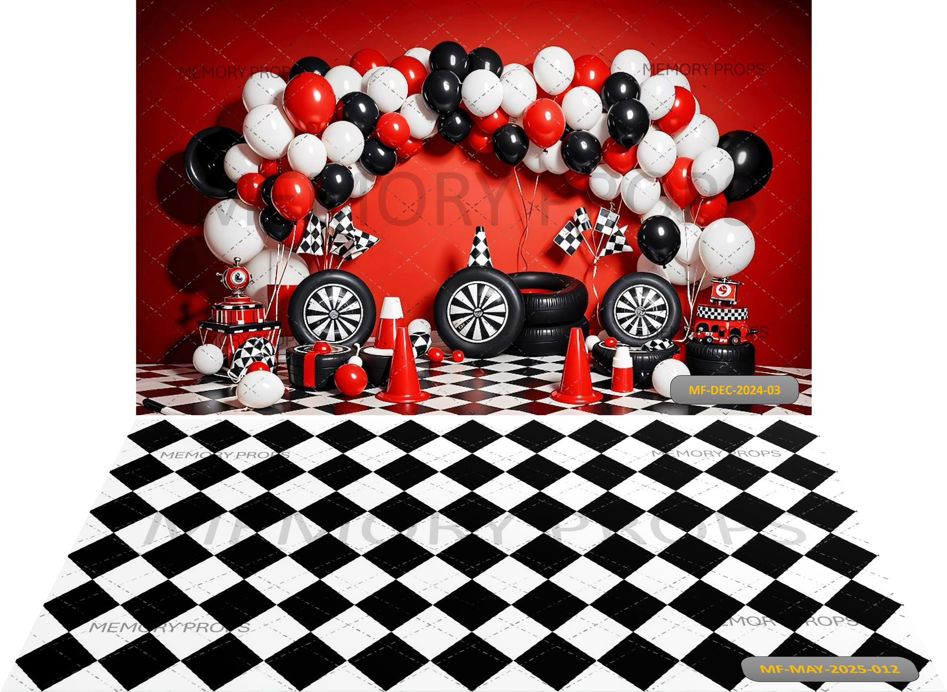 CHECKERED RACING TIRE + CHECKERED RACING BACKDROP