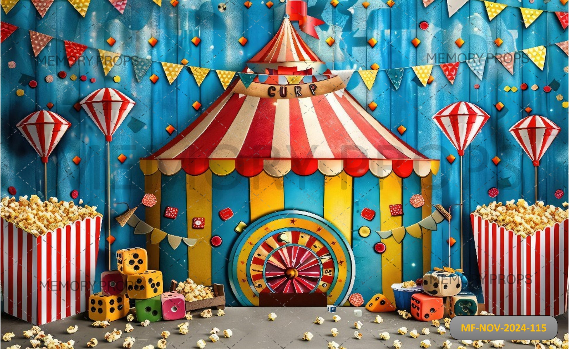 Bold and iconic, this red and white striped circus tent backdrop captures the timeless magic of the big top — perfect for carnival-themed shoots, birthday celebrations, and playful photo sessions filled with wonder.