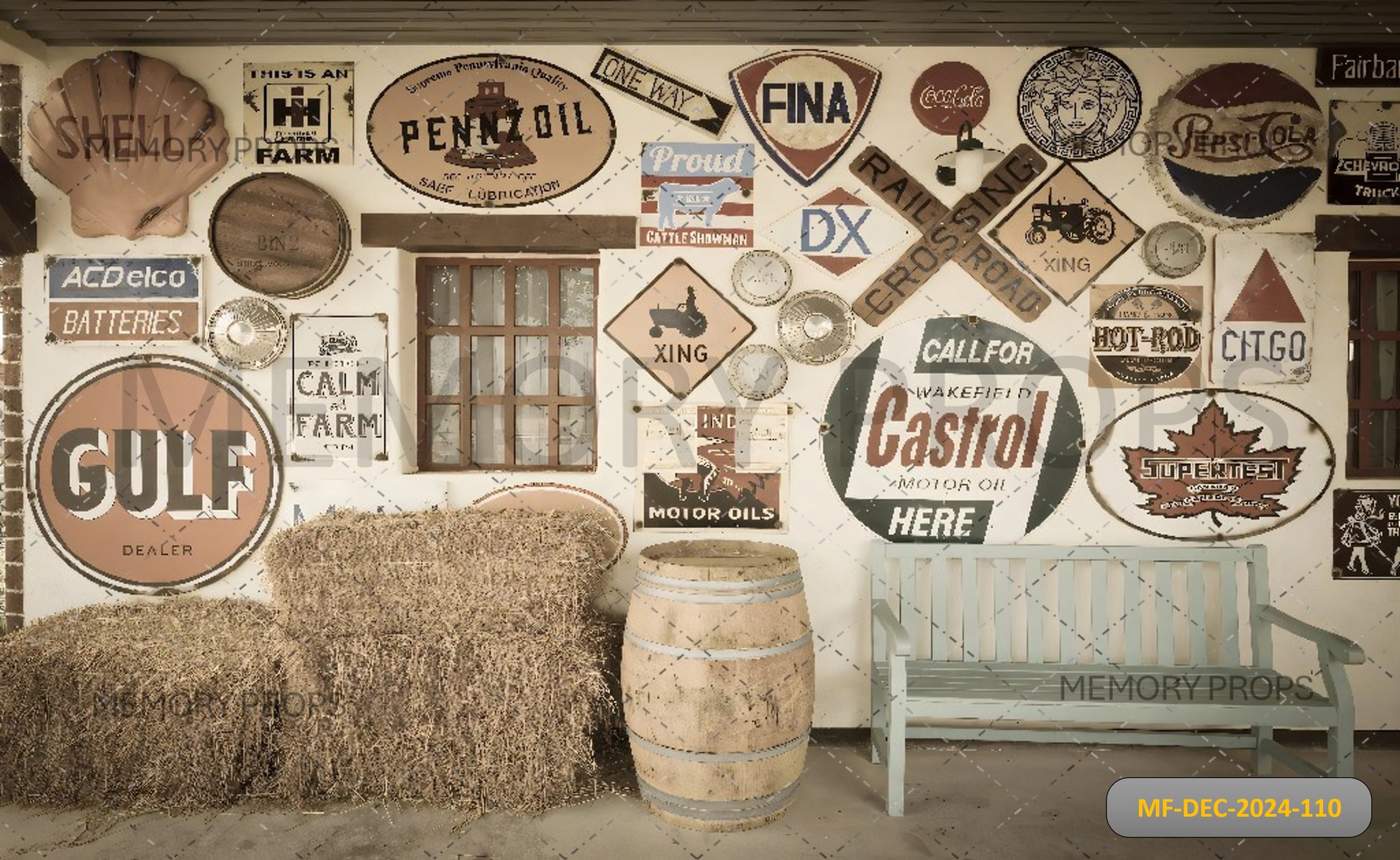 Saddle up with this Western-style backdrop featuring rustic barns, wooden fences, cacti, and desert skies—ideal for Wild West parties, rodeo events, and cowboy-themed photo shoots.