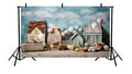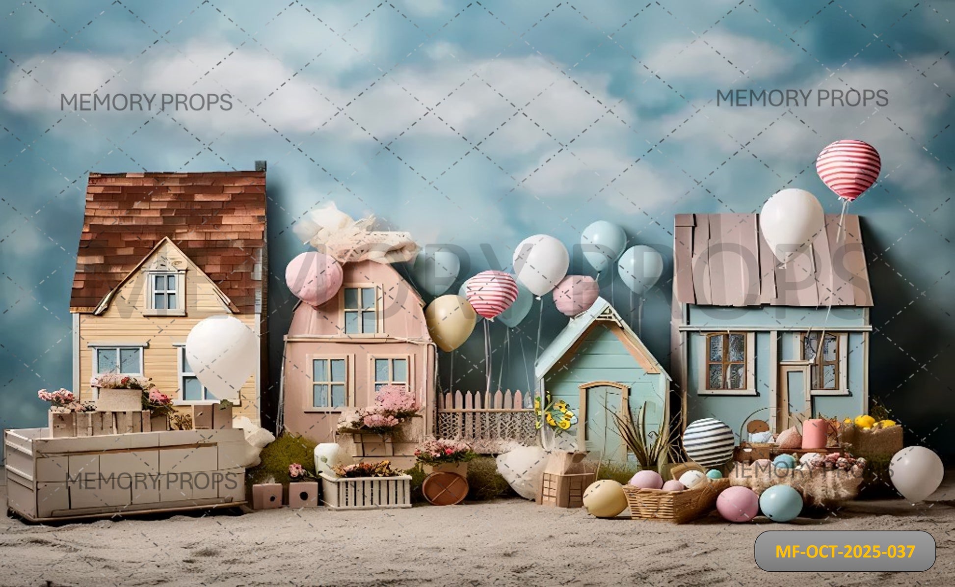 EASTER PASTEL VILLAGE AND BALLOONS - PRINTED BACKDROP