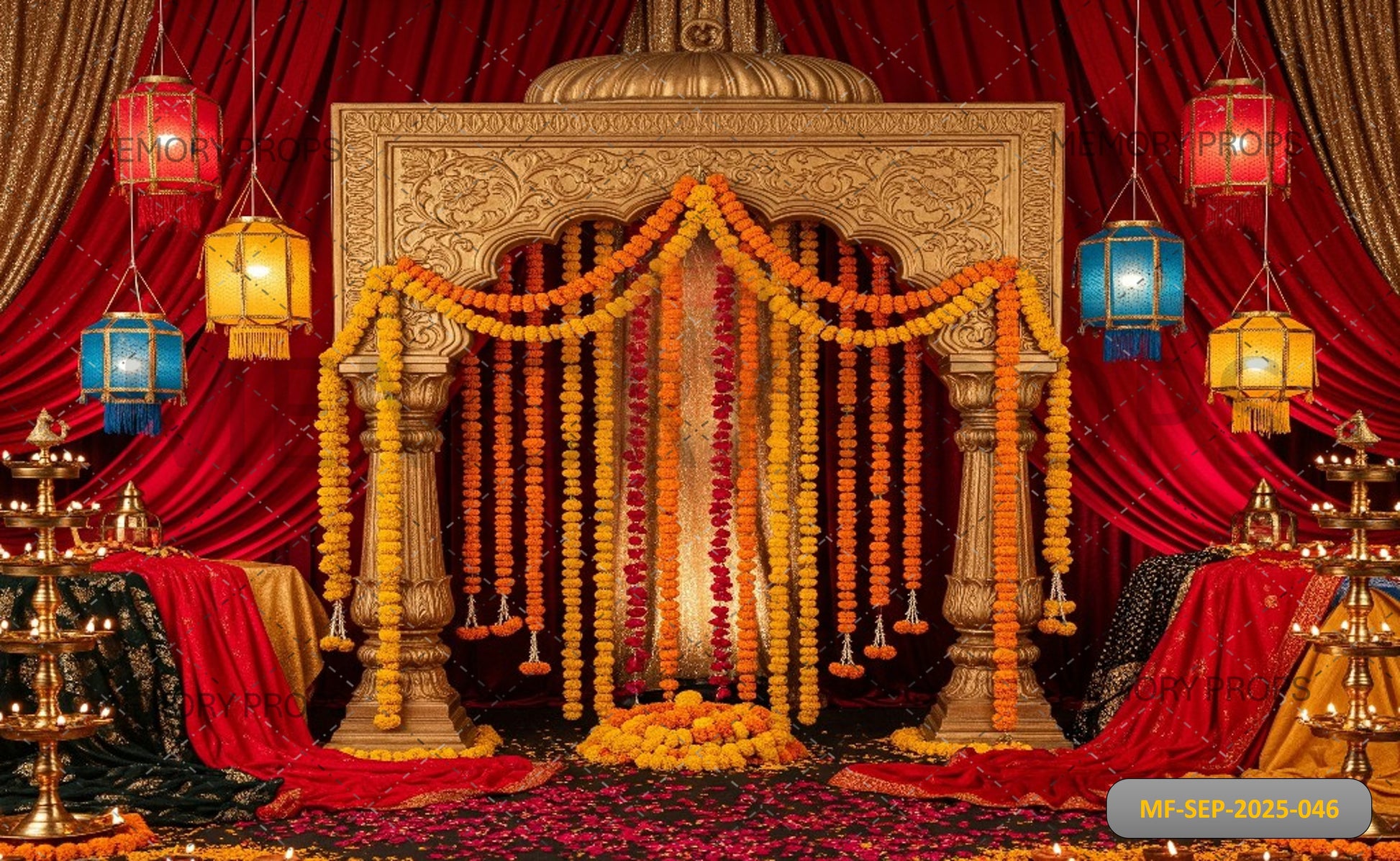 Step into timeless grandeur with this stunning backdrop featuring a majestic ballroom staircase, detailed with regal architecture, ornate banisters, and soft golden lighting. Perfect for weddings, receptions, pre-wedding shoots, or royal-themed events, it adds sophistication and luxury to every frame. A backdrop that transforms any moment into a scene of classic elegance and celebration.