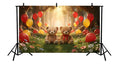 ENCHANTED FOREST TEDDY BEAR PICNIC WITH RED AND YELLOW BALLOONS - PRINTED BACKDROP