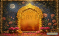 The Golden Lotus Arch backdrop embodies timeless elegance with its radiant golden tones and intricate lotus-inspired design. Featuring a grand arch adorned with delicate lotus motifs, shimmering accents, and rich traditional detailing, this backdrop is perfect for weddings, engagements, receptions, and festive celebrations. Its luxurious appeal creates a royal stage effect, blending cultural symbolism with opulent aesthetics. Whether for rituals, photography, or décor, the Golden Lotus Arch adds a majestic touch, ensuring every moment feels regal and unforgettable.