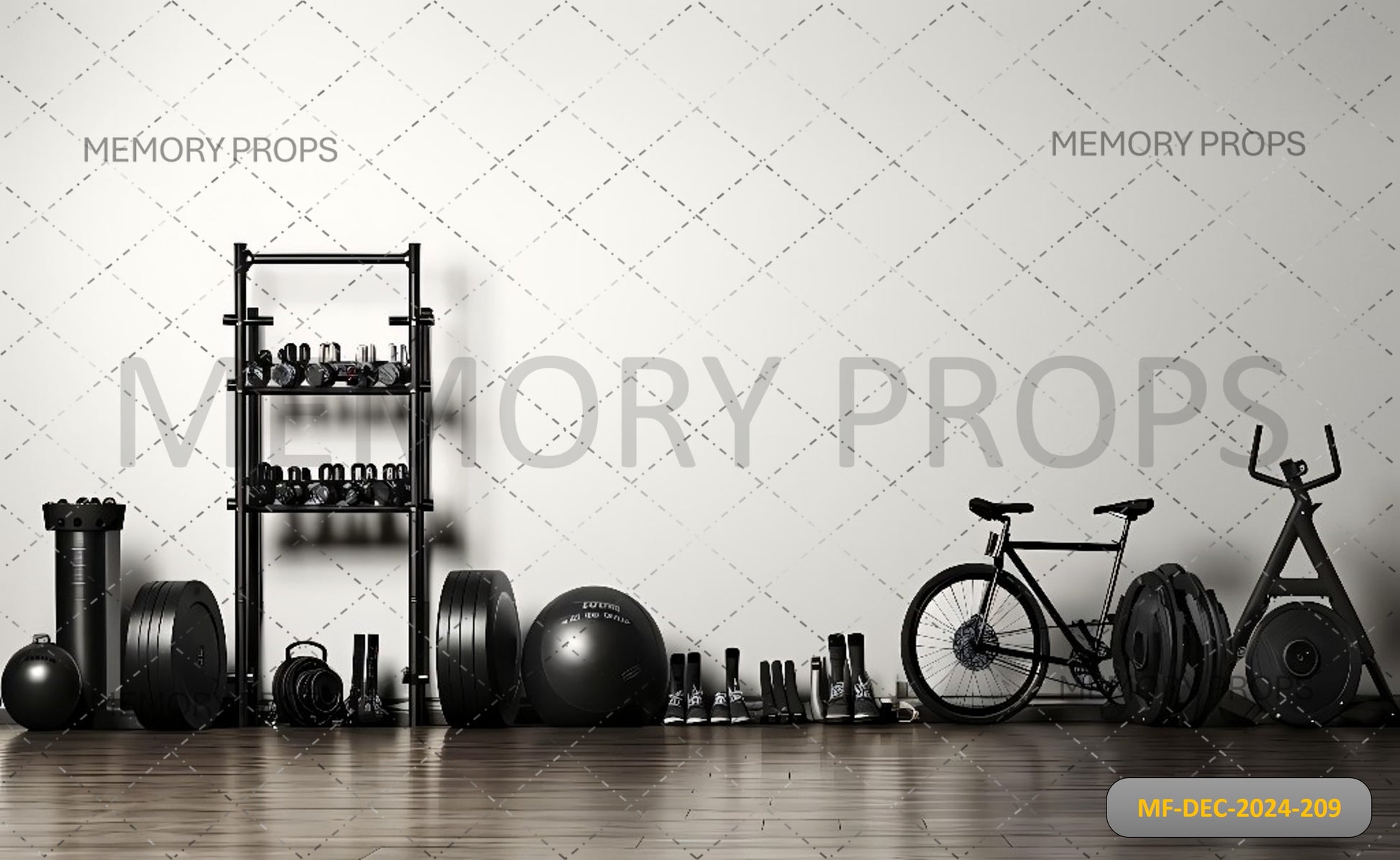 This printed backdrop features a stylish and modern home gym setup, complete with workout equipment, motivational accents, and a sleek interior vibe — ideal for fitness-themed shoots, wellness promotions, or virtual training content.
