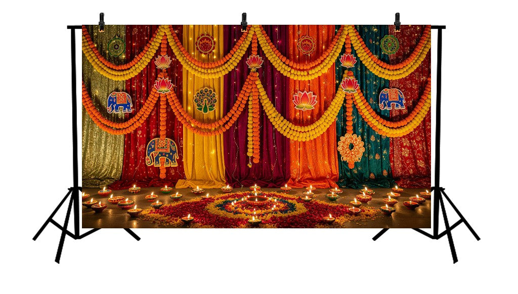 A timeless design infused with traditional patterns, vibrant hues, and ethnic artistry, the Indian Cultural Decor backdrop beautifully reflects the spirit of heritage and festivity.