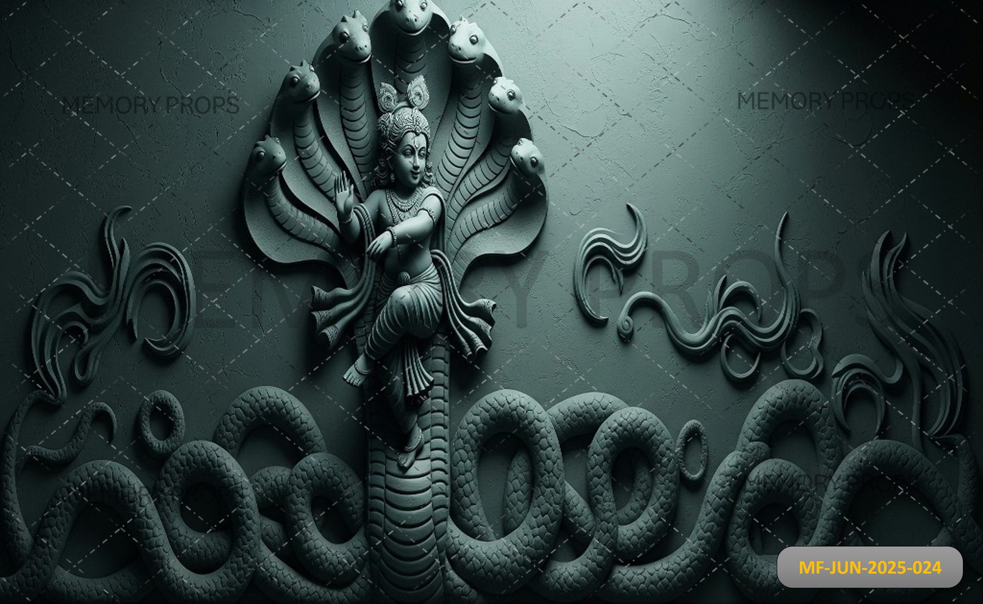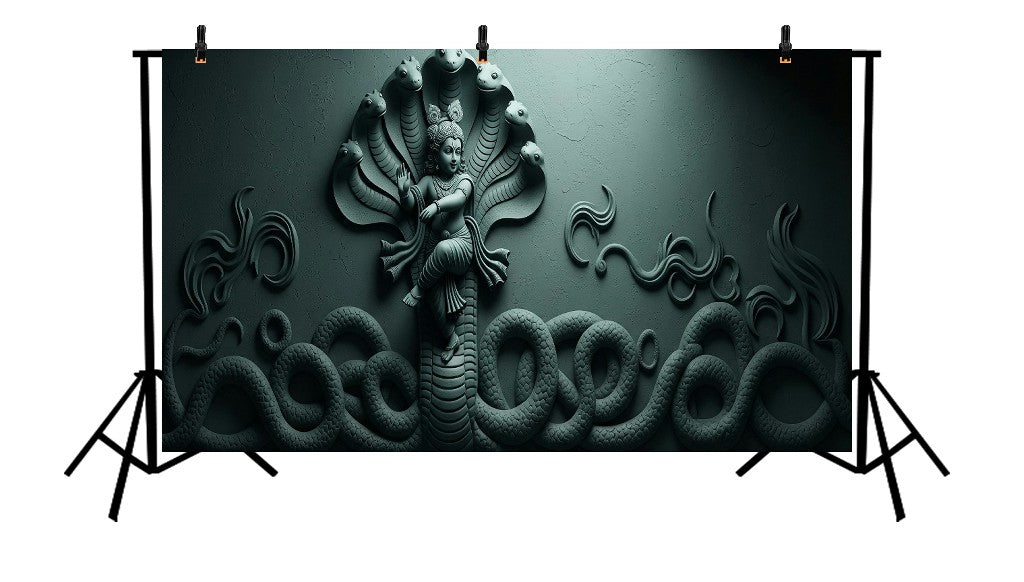 KRISHNA DANCING ON THE SERPENT KALIYA - PRINTED BACKDROP