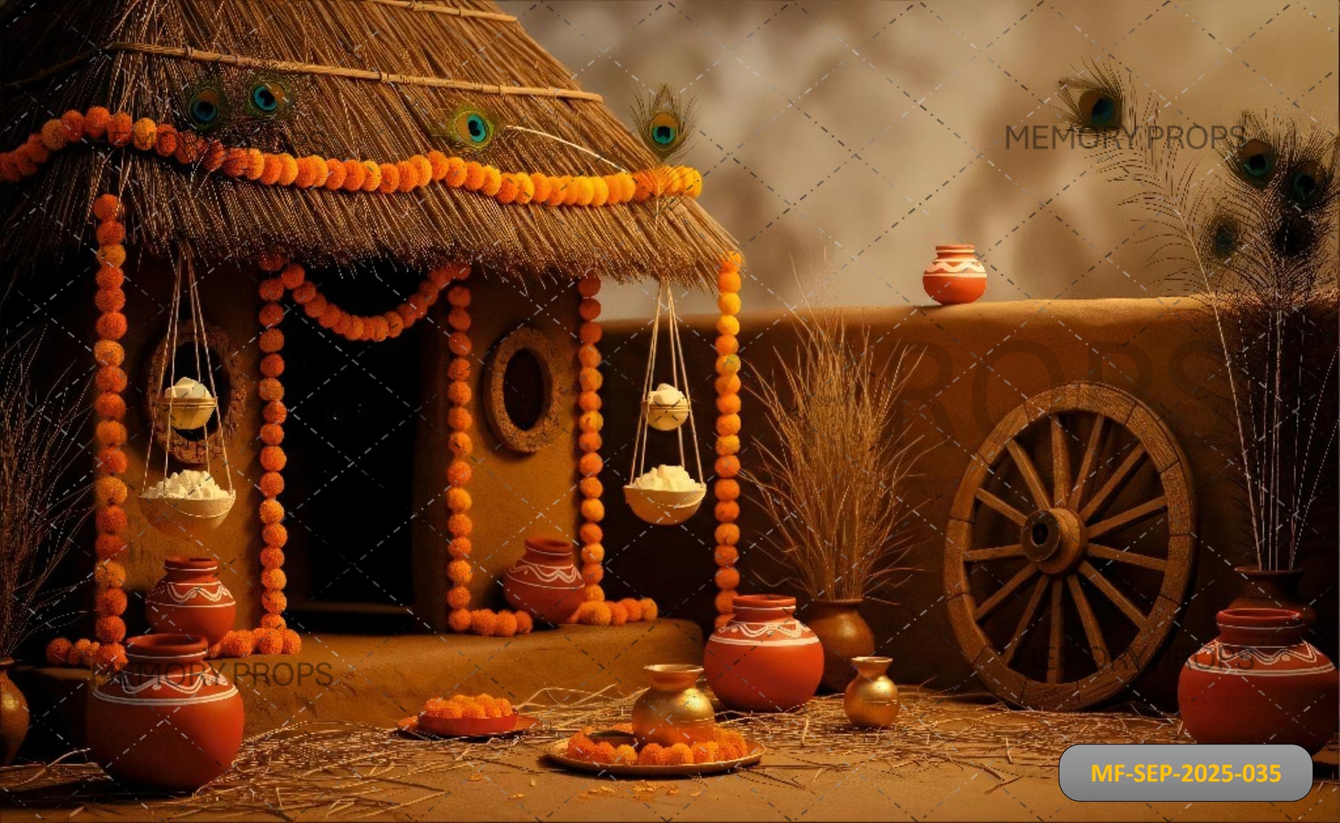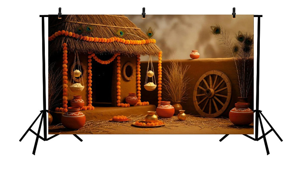 A graceful backdrop showcasing blooming lotus flowers and a majestic peacock, symbolizing purity, beauty, and elegance — perfect for cultural, festive, or divine-themed photoshoots.