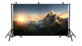 A Breathtaking printed backdrop featuring towering snow-covered mountain peaks bathed in the warm golden hues of sunrise. Soft morning light gently illuminates the rugged alpine landscape, creating a serene yet powerful atmosphere. The clear sky transitions from delicate pastel tones to rich sunrise colours, adding depth and realism. Ideal for studio photography, stage décor, events, exhibitions, or interior styling, this high-resolution backdrop delivers a natural, majestic, and timeless scenic appeal.