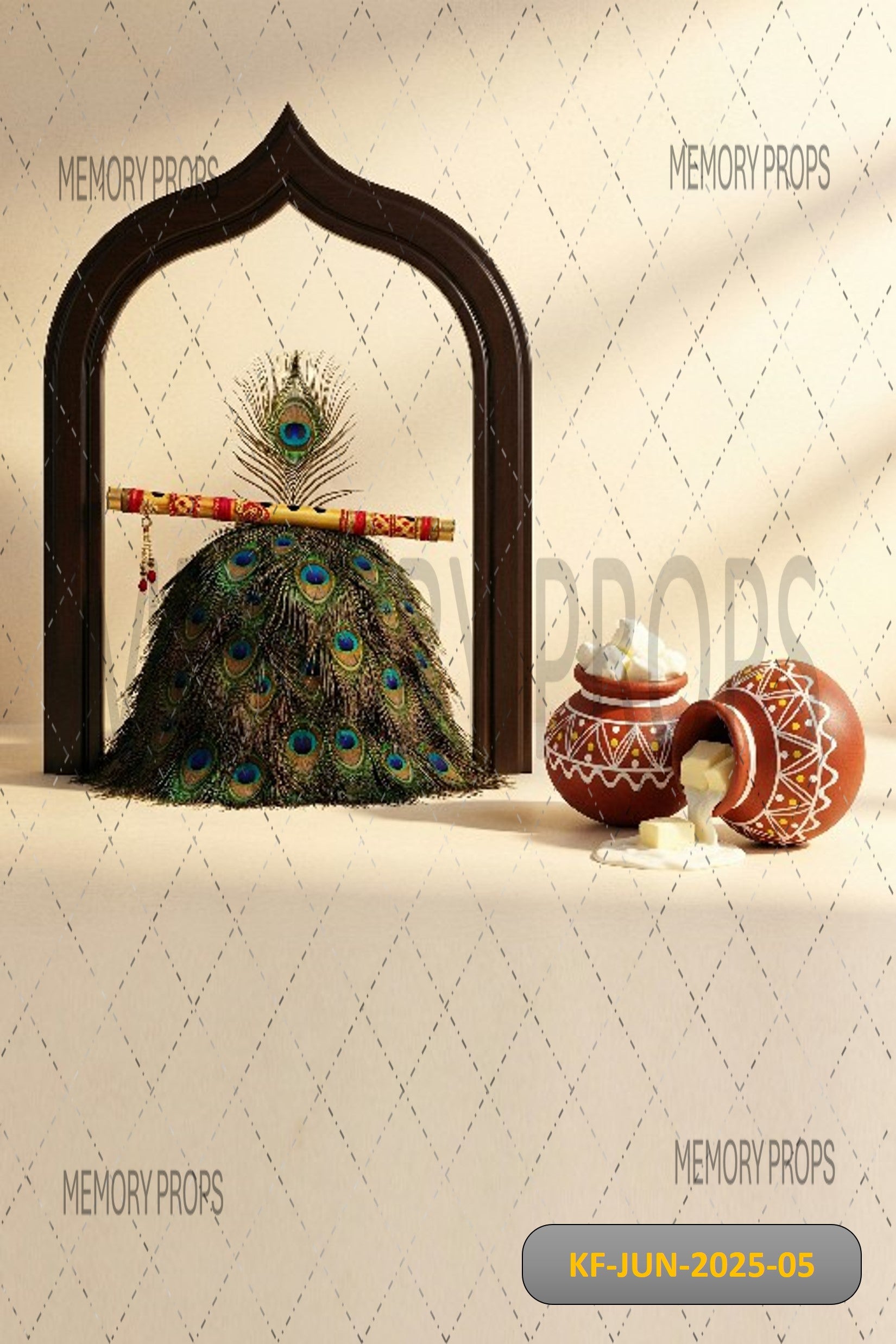 Step into a divine temple of sweetness where little Krishna’s love for butter comes alive — featuring traditional mandir architecture, dangling matkis, and a cozy floor setup that’s perfect for Janmashtami shoots, baby Krishna portraits, and culturally rich celebrations.