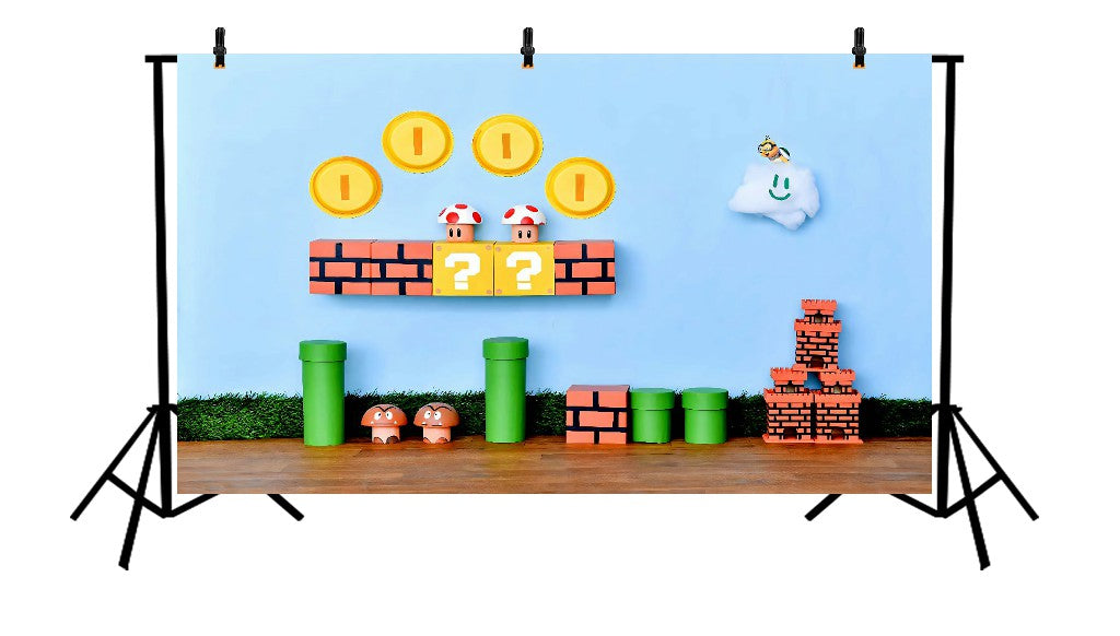 Bring the magic of the Mushroom Kingdom to life with the Mario’s World printed backdrop! Bursting with vibrant colours, iconic characters, and playful elements from the beloved video game universe, this backdrop is perfect for kids' parties, gaming events, or themed photoshoots. It’s a nostalgic adventure that jumps right off the screen!