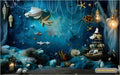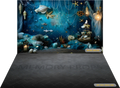 mermaid theme backdrop with grey flooring creates a mystical and ocean-inspired atmosphere. The printed backdrop enhances the scene with underwater elements, soft aquatic tones, and a neutral flooring base, perfect for themed parties, fantasy photography, and sea-inspired decor.
