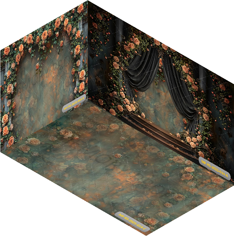 Step into a mysterious and magical garden bathed in moonlight, where deep florals, lush greenery, and soft glowing accents create a dreamy, romantic atmosphere. Perfect for fine art portraits, fantasy-themed shoots, or evening-inspired celebrations, this room set backdrop captures the beauty and allure of a secret garden after dark.