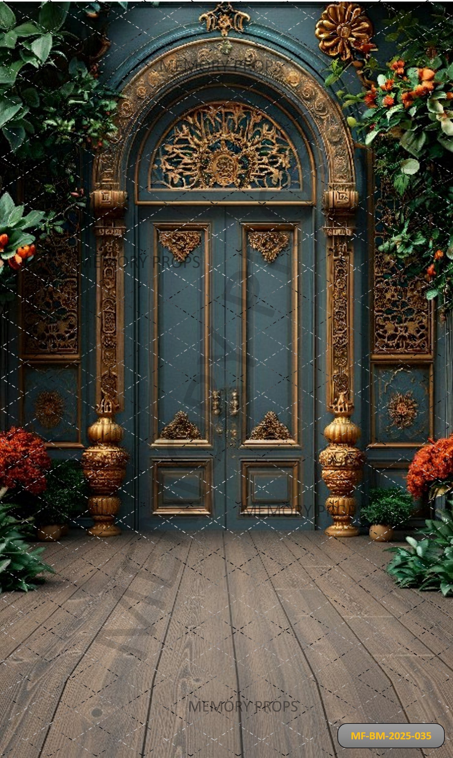 ORNATE TEAL VICTORIAN DOORS WITH GOLD EMBELLISHMENTS - PRINTED BACKDROP