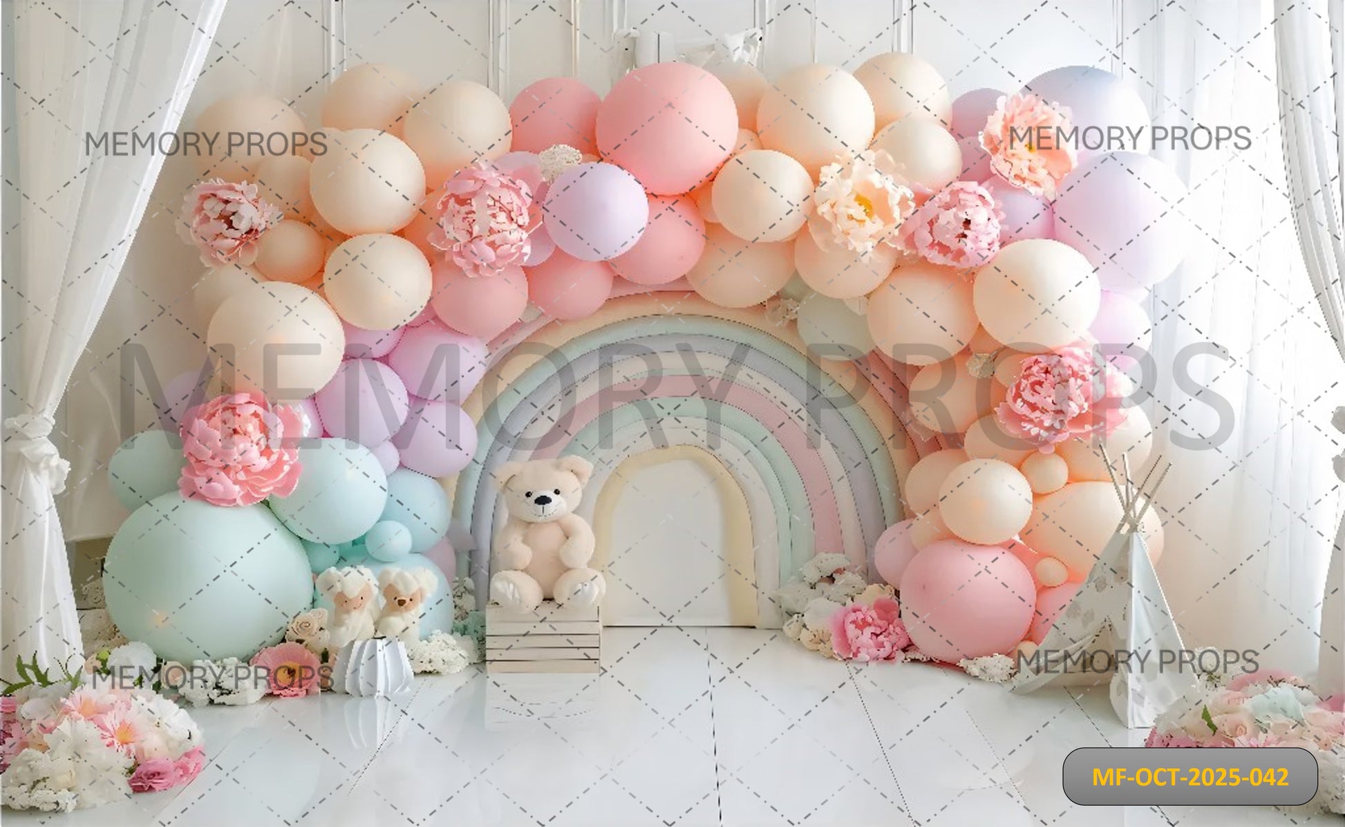 PASTEL RAINBOW BALLOON ARCH - PRINTED BACKDROP