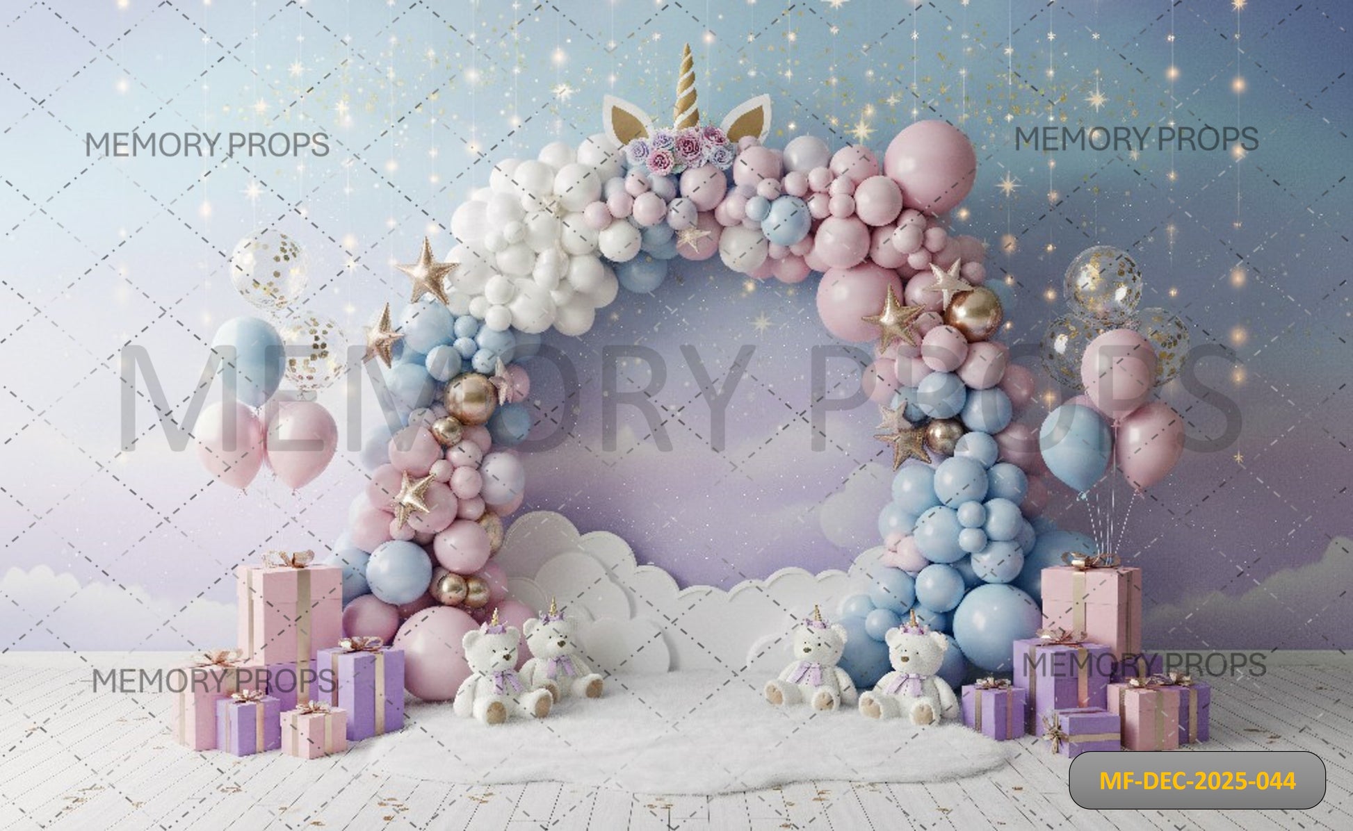 PASTEL UNICORN BALLOON ARCH WITH STARRY NIGHT SKY - PRINTED BACKDROP