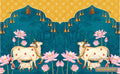 Pichwai cow art backdrop with a green texture creates a traditional and artistic atmosphere. The printed backdrop enhances the scene with intricate detailing, rich cultural heritage, and vibrant hues, perfect for spiritual events, cultural decor, and thematic photography.