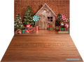 RED BRICK WALL CHRITSMAS + BROWN WOODEN TEXTURE BACKDROPS