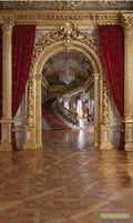 RED VELVET AND GOLD MANSION STAIRCASE - PRINTED BACKDROP