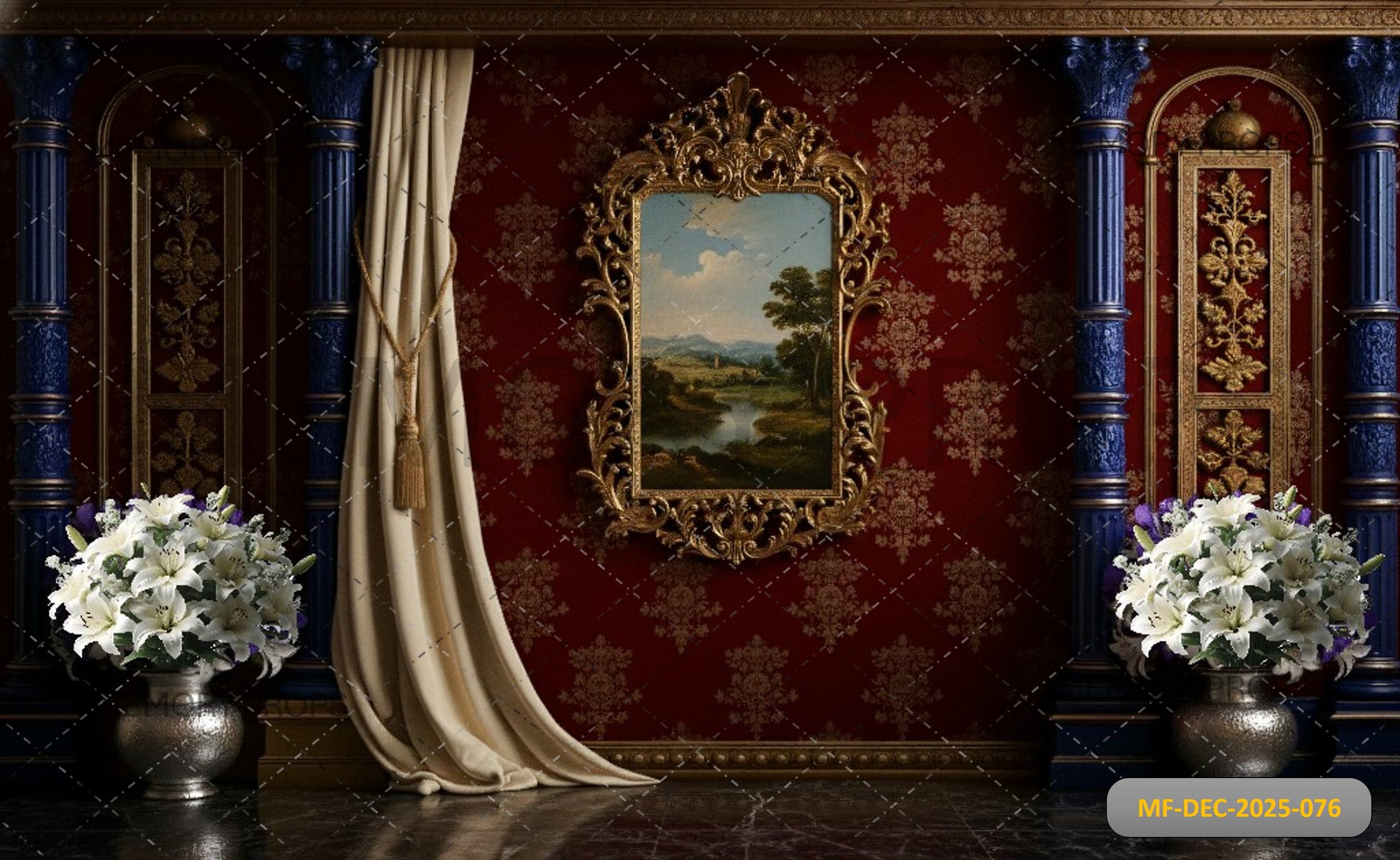 REGAL CRIMSON DAMASK WALL - PRINTED BACKDROP