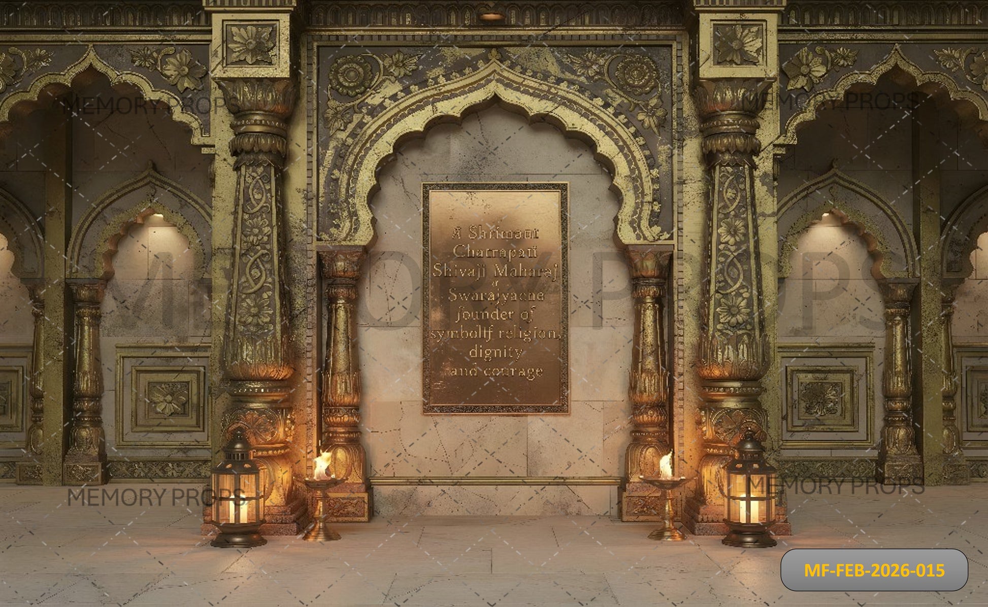 REGAL GOLDEN MARATHA PALACE WITH ETCHED CHHATRAPATI SHIVAJI MAHARAJ PLAQUE - PRINTED BACKDROP