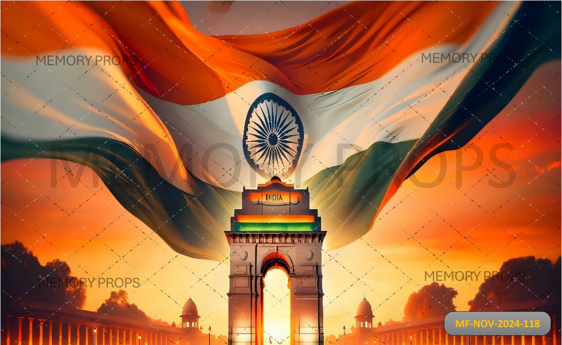 Celebrate the spirit of India with a backdrop featuring the national flag, iconic monuments, and tricolour elements — perfect for cultural events, school functions, and proud patriotic photo sessions.