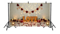 ROMANTIC VALENTINE WHITE BRICK WALL WITH MARQUEE LOVE LETTERS, HEART GARLANDS, AND ROSE PETALS - PRINTED BACKDROP