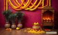 Step into the regal realm of Dwarka with an opulent courtyard adorned in intricate palace arches, lotus carvings, and divine symbols — capturing the royal grace and spiritual presence of Lord Krishna. Perfect for festive celebrations, devotional portraits, and mythological setups that echo divine royalty.