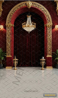 ROYAL RED AND GOLD CHANDELIER ARCH - PRINTED BACKDROP