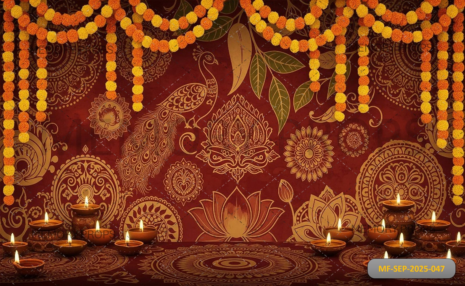 Celebrate culture and color with this majestic backdrop, featuring a stunning wall of traditional royal umbrellas in vibrant hues and intricate patterns. Perfect for weddings, festive events, haldi, mehndi, and cultural celebrations, it creates a rich and regal atmosphere that blends heritage with elegance. A true statement piece that adds charm and royalty to every photograph.