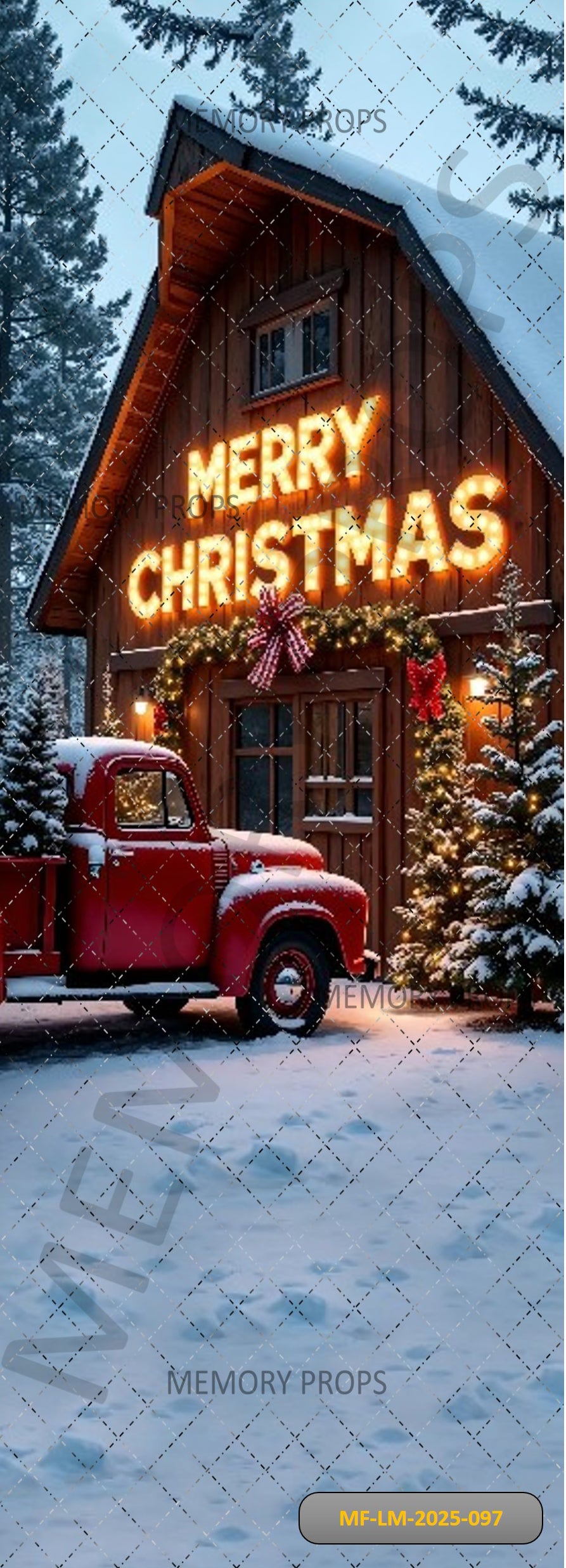 Bring timeless holiday charm to your photoshoots with the Rustic Barn and Red Truck Christmas Backdrop. Designed to capture the warmth and nostalgia of a countryside Christmas, this backdrop features a classic weathered wooden barn, a vintage red pickup truck, lush holiday greenery, and festive wreaths and garlands that set a heartwarming seasonal mood. Soft snowfall and warm glowing lights add a magical winter touch, making it perfect for family portraits, kids’ photoshoots, holiday events, and festive décor.
