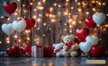 A charming printed backdrop featuring a rustic wooden stage styled for Valentine’s celebrations. Weathered wood textures create a warm, vintage feel, complemented by romantic accents that evoke love and togetherness. Soft, ambient lighting enhances depth and adds a cozy, intimate atmosphere. Ideal for Valentine’s Day photoshoots, couple portraits, studio setups, stage décor, and themed events, this high-resolution backdrop blends rustic elegance with heartfelt romance.