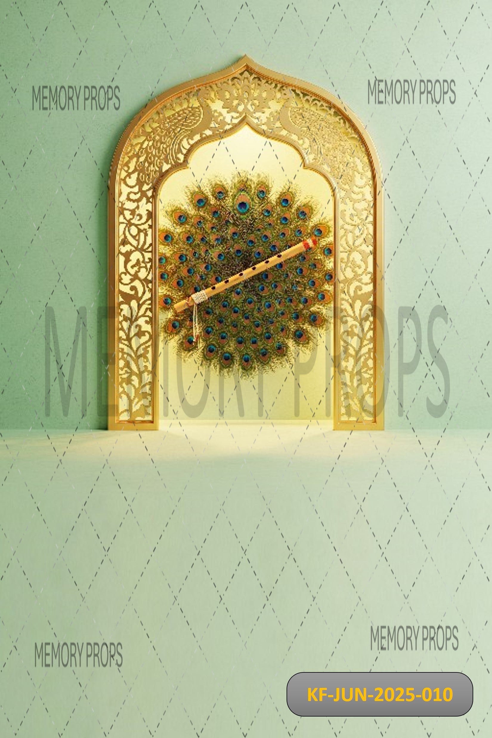 Unveil the divine treasures of childhood with little Gopal surrounded by makhan-filled pots, golden hues, and sacred décor — set on a beautifully detailed floor that reflects the purity, joy, and charm of Krishna’s playful world. Perfect for Janmashtami shoots, baby Krishna portraits, and devotional celebrations.