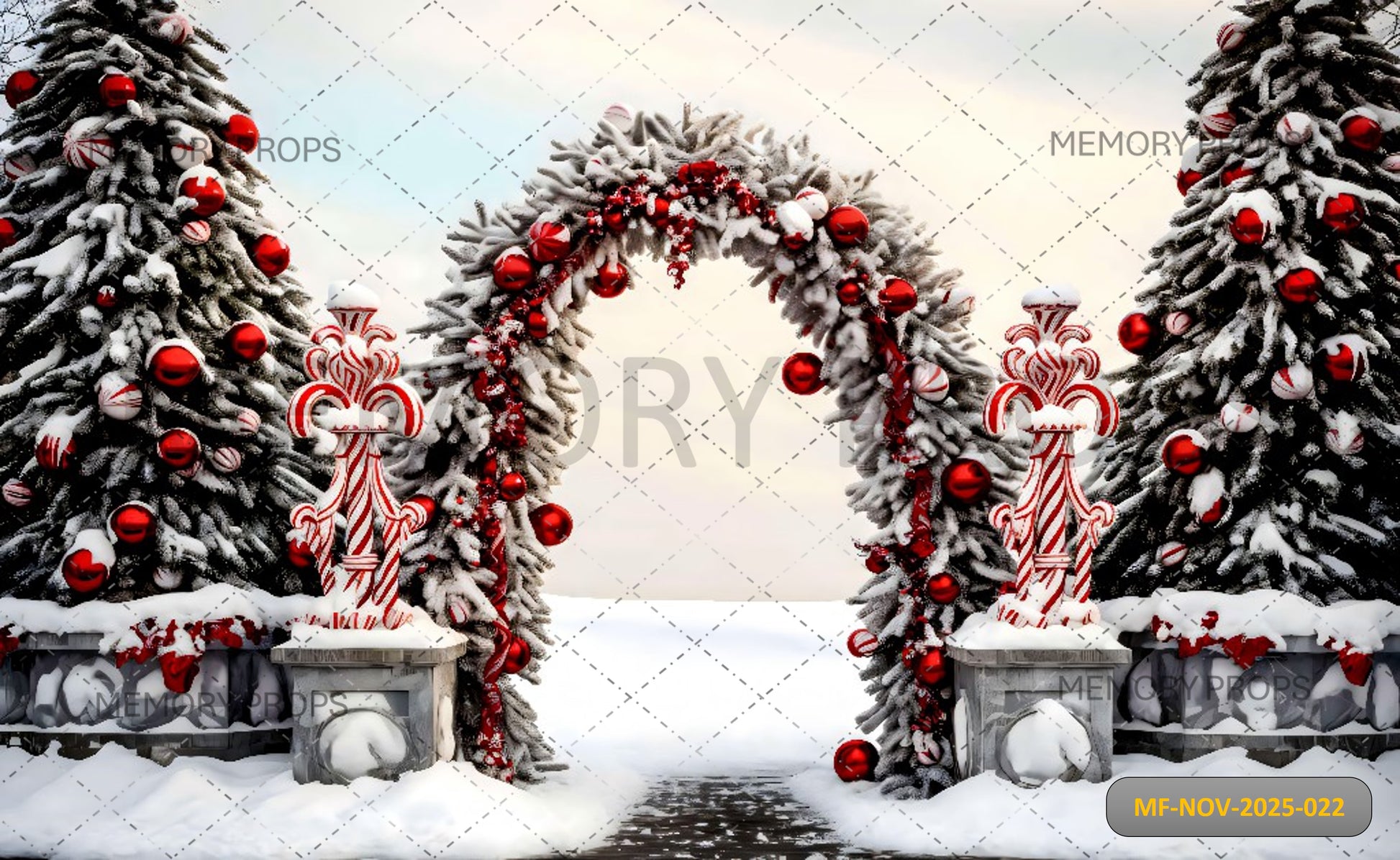 SNOWY CANDY CANE ARCHWAY - PRINTED BACKDROP