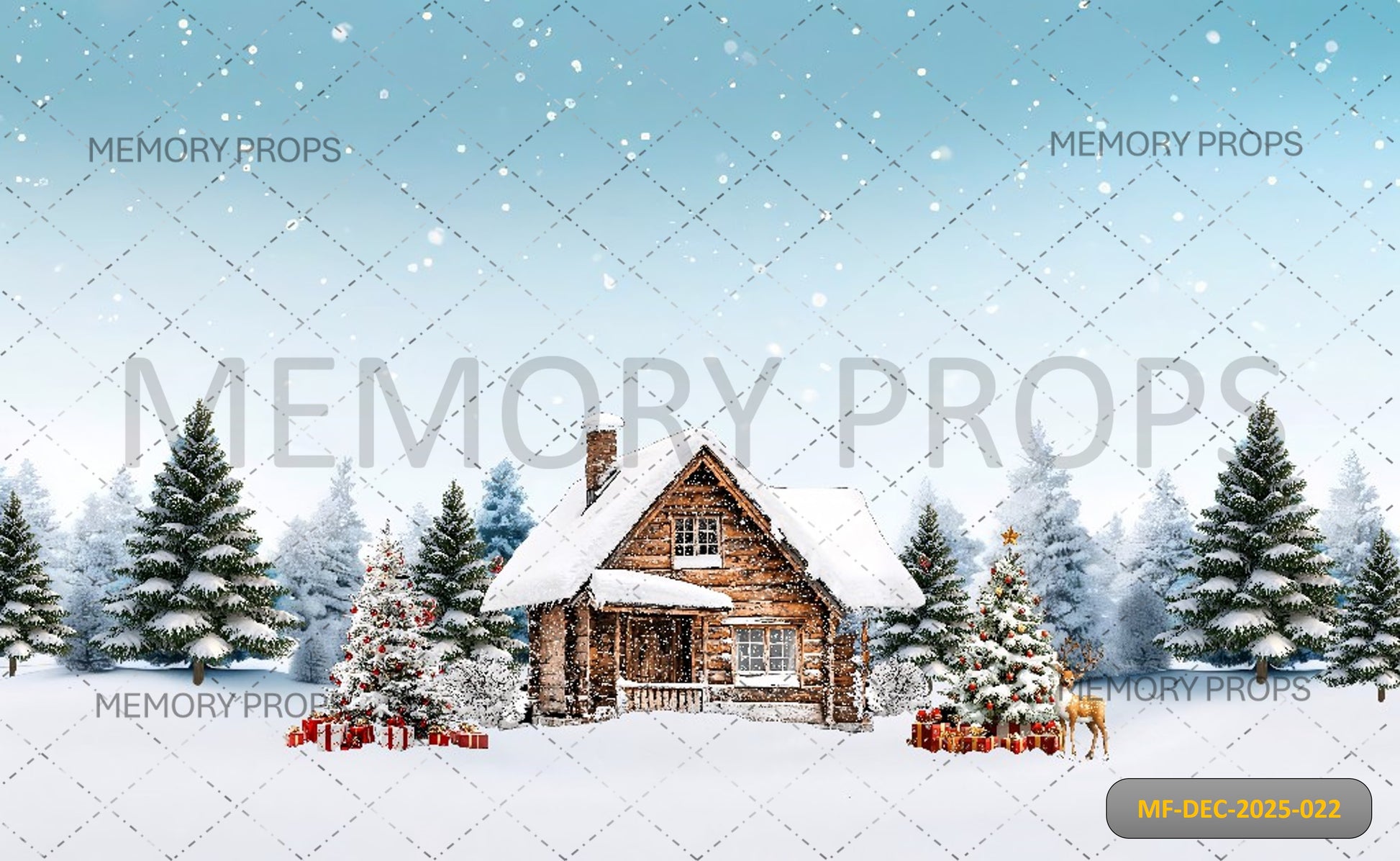 SNOWY LOG CABIN CHRISTMAS - PRINTED BACKDROP