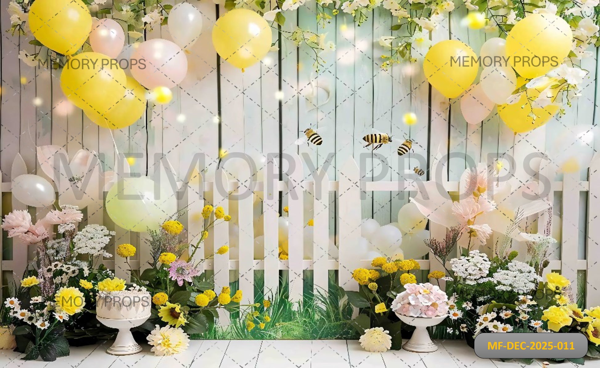 Bring cheerful outdoor charm to your celebration with the Springtime Garden with White Fence and Bee Printed Backdrop. Featuring colourful spring flowers, lush greenery, a classic white picket fence, and adorable buzzing bees, this backdrop creates a bright and joyful garden scene. Perfect for birthdays, baby showers, kids’ parties, spring celebrations, and photo shoots, it’s printed in high resolution with vibrant colours and delightful details for fresh, happy, and memorable photos.