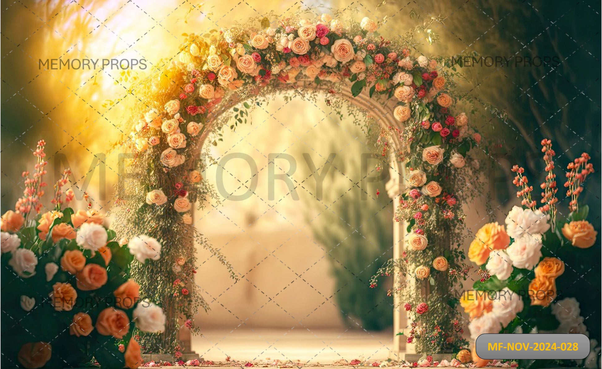 SQUARE WEDDING ARCH WITH ROSES ON BLURRED - PRINTED BACKDROP