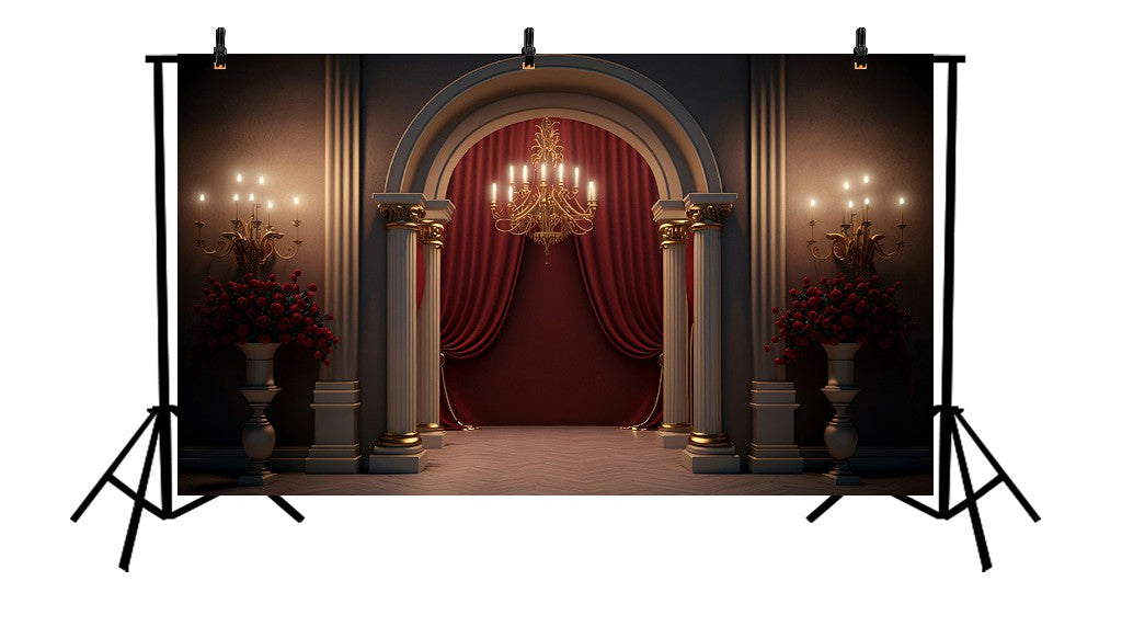 An opulent backdrop featuring grand chandeliers, luxurious drapes, and ornate architectural details, The Royal Gala sets the perfect stage for elegant portraits, wedding events, and regal-themed celebrations that demand sophistication and splendor.